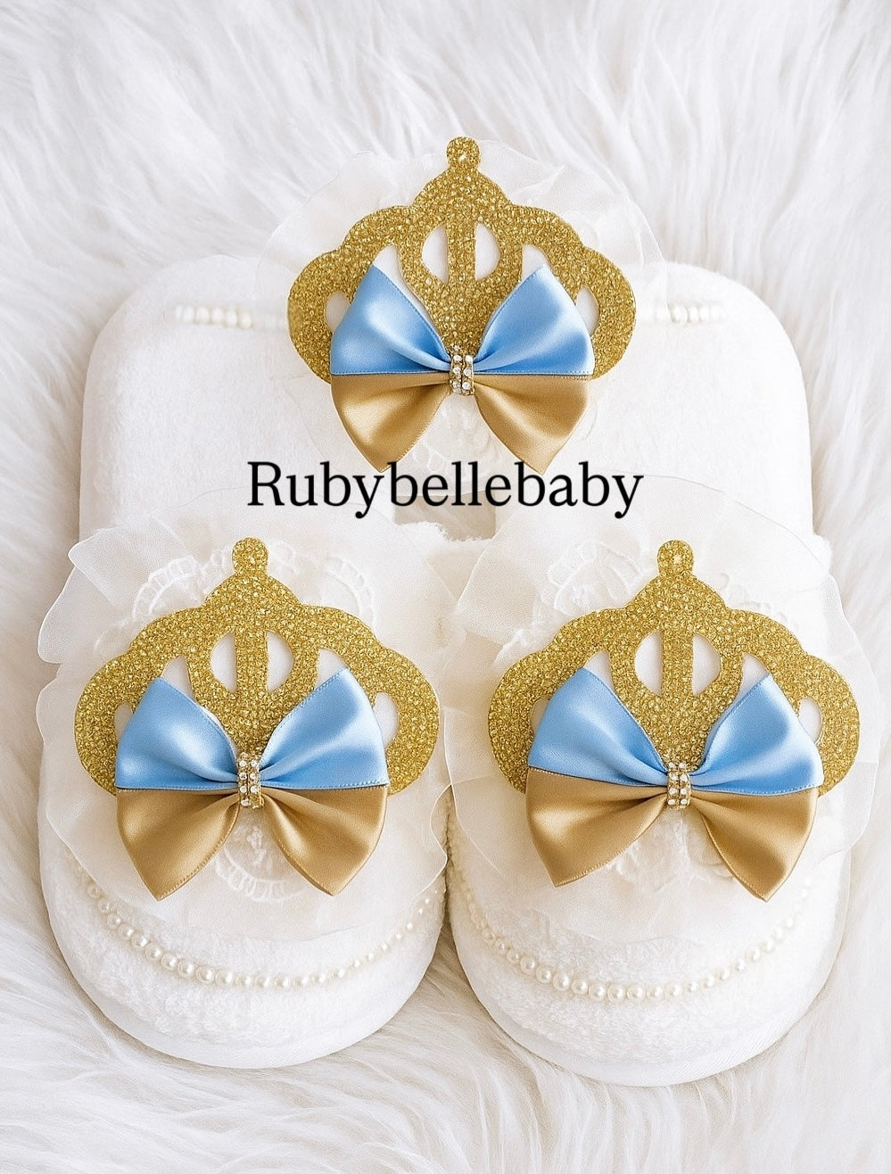Crown Mom Slipper Set - Light Blue/Gold