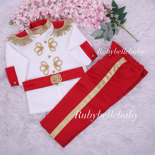 Personalized Red and White Prince Outfit Christmas Costume for Boys Birthday Costume Boy Photoshoot Outfit for Baby Boy