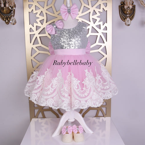 Veronica Girl Lace Romper Velvet Outfit - Blush Pink