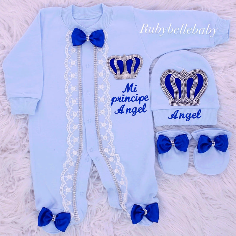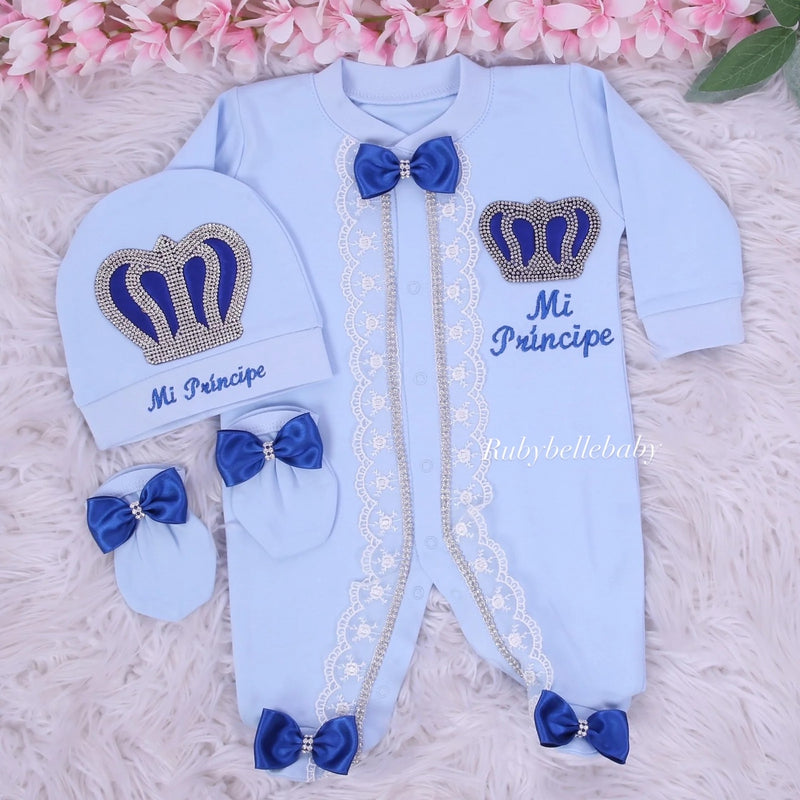 3pcs Royal Crown Baby Boy Outfit - Blue