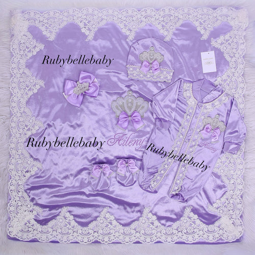 5pcs Jeweled Crown Velvet Blanket Set - Lilac