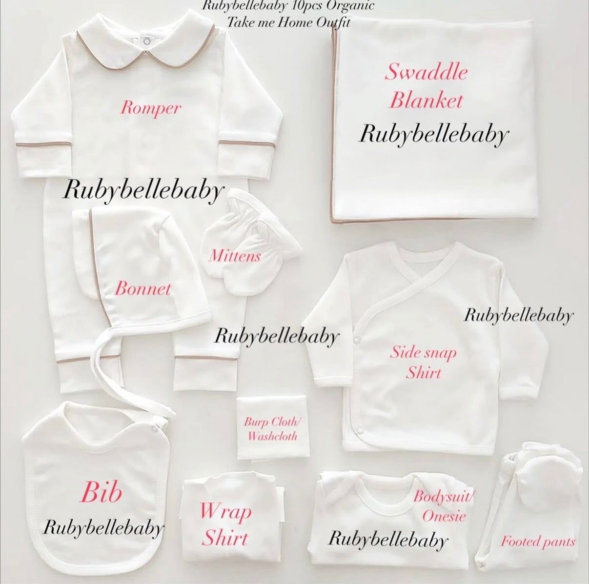 Organic Newborn Essentials Set 10 Piece Pure Cotton Layette Neutral White Baby Gift Set Take Me Home Baby Outfit Hospital Exit clothes