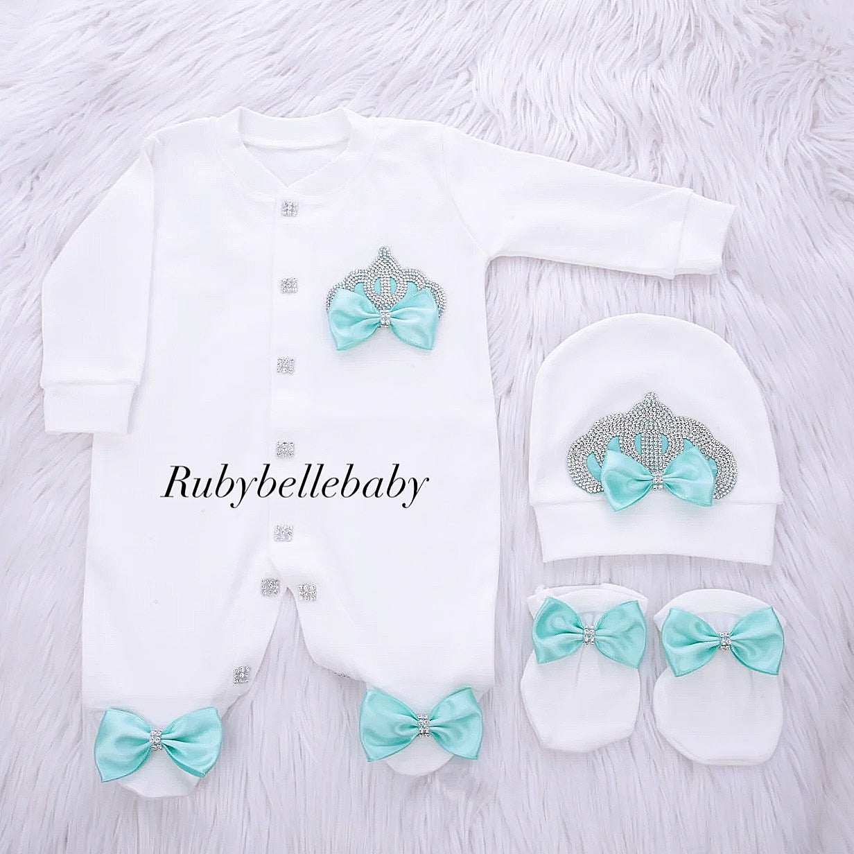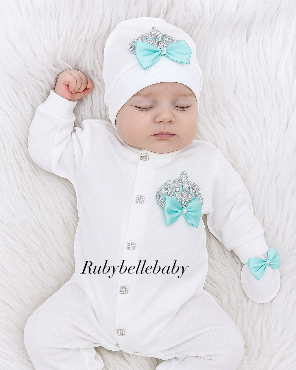 3pcs Princess Crown Baby Layette Outfit - Mint Green