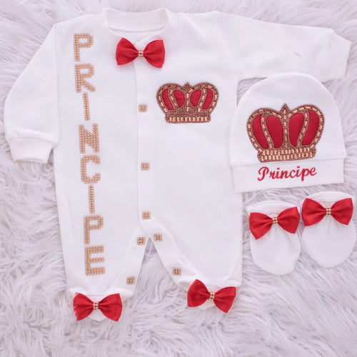 3pcs Prince HRH Crown Baby Boy Outfit - Red