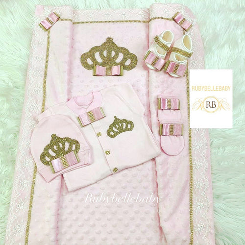 6pcs HRH Crown Baby Girl Set - Pink/Silver or Gold