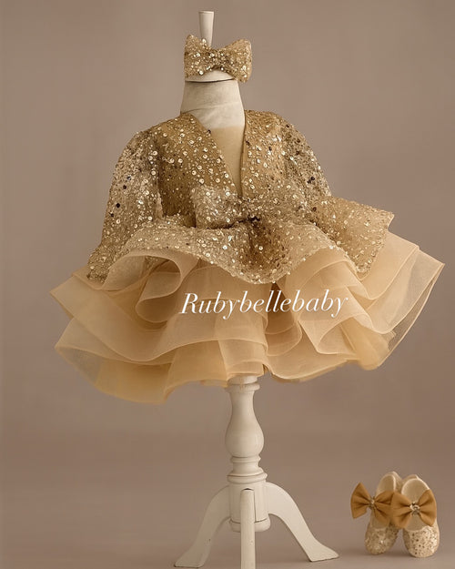 Golden Belle Sequin Girls Party Dress Set - Gold