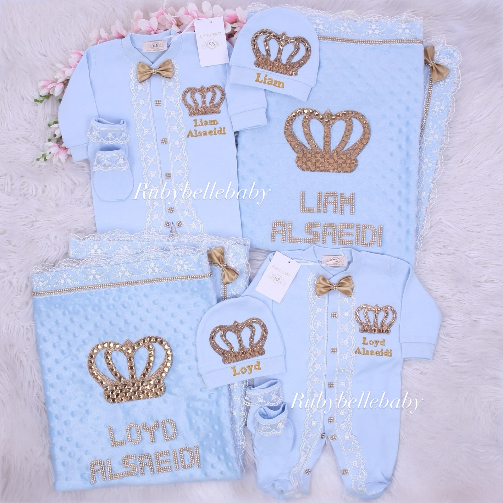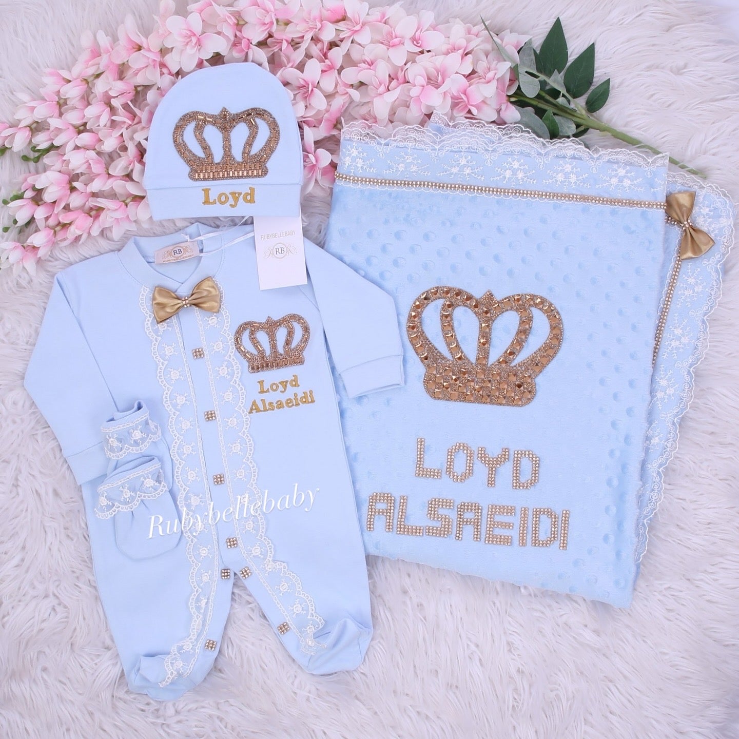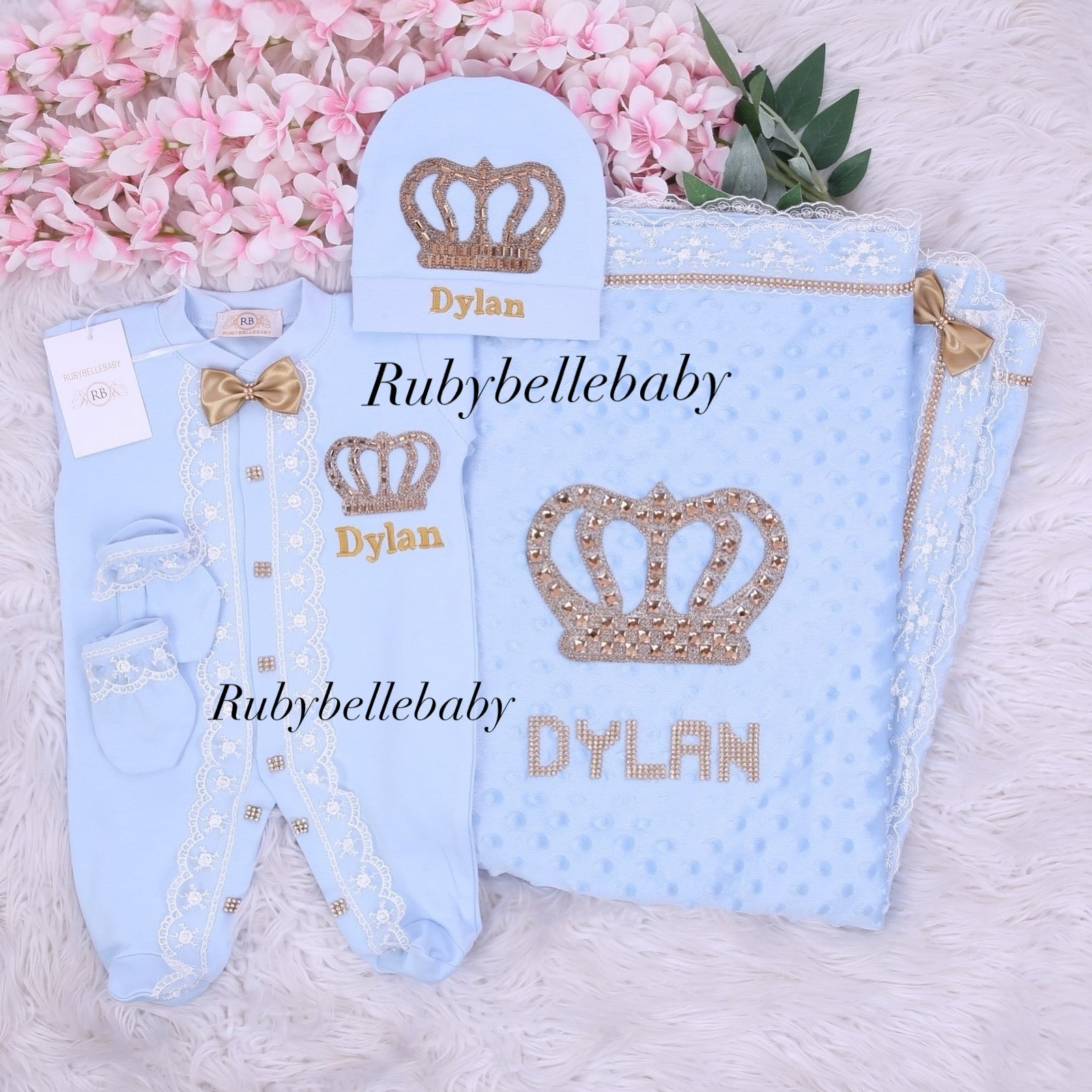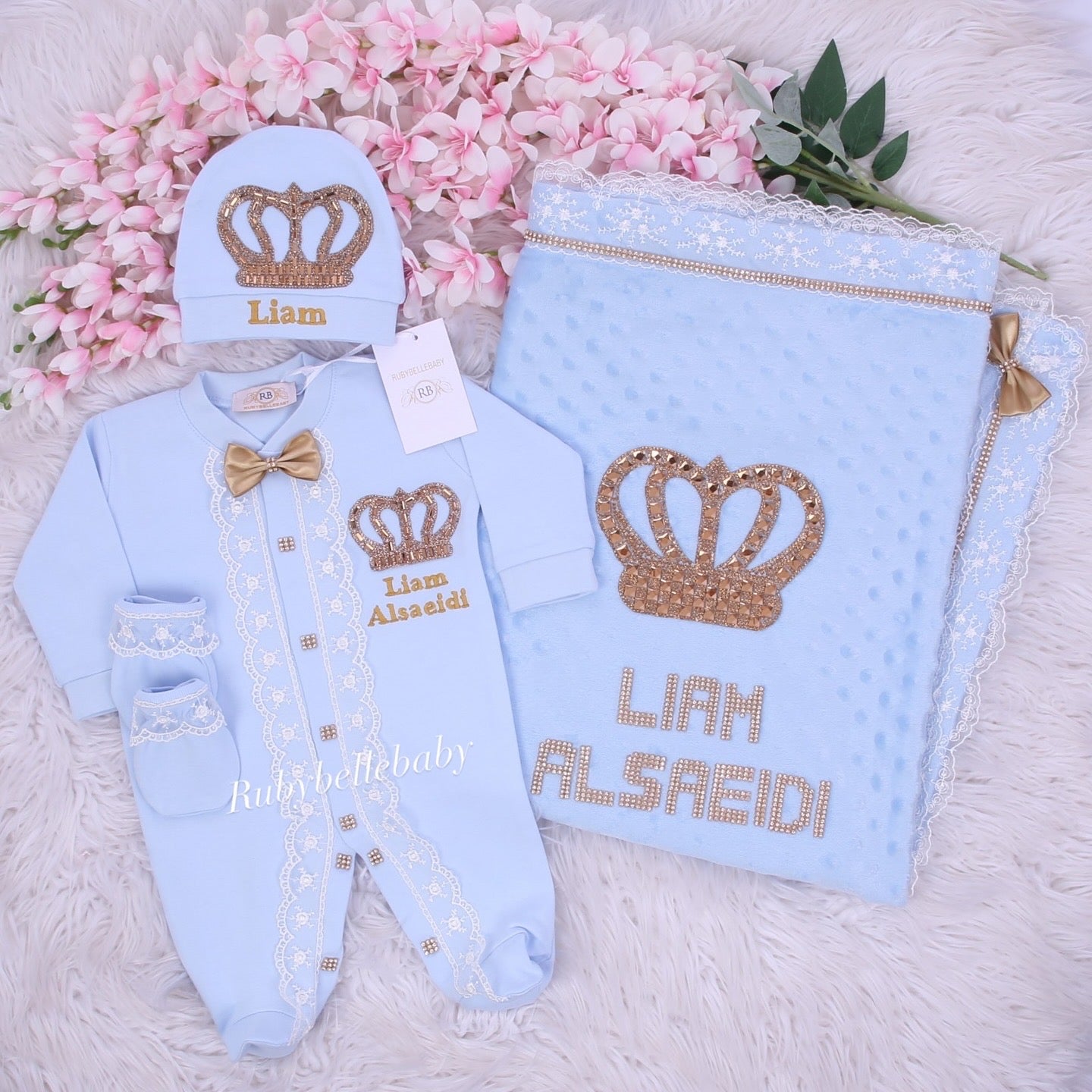 4pcs HRH Crown Royal Baby Boy Clothing Set - Light Blue/Gold