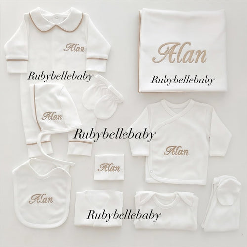 Organic Newborn Essentials Set 10 Piece Pure Cotton Layette Neutral White Baby Gift Set Take Me Home Baby Outfit Hospital Exit clothes