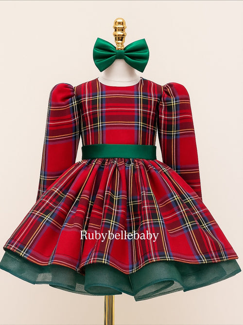 Classic Red Plaid Holiday Dress – Festive Christmas Girls Party Dress