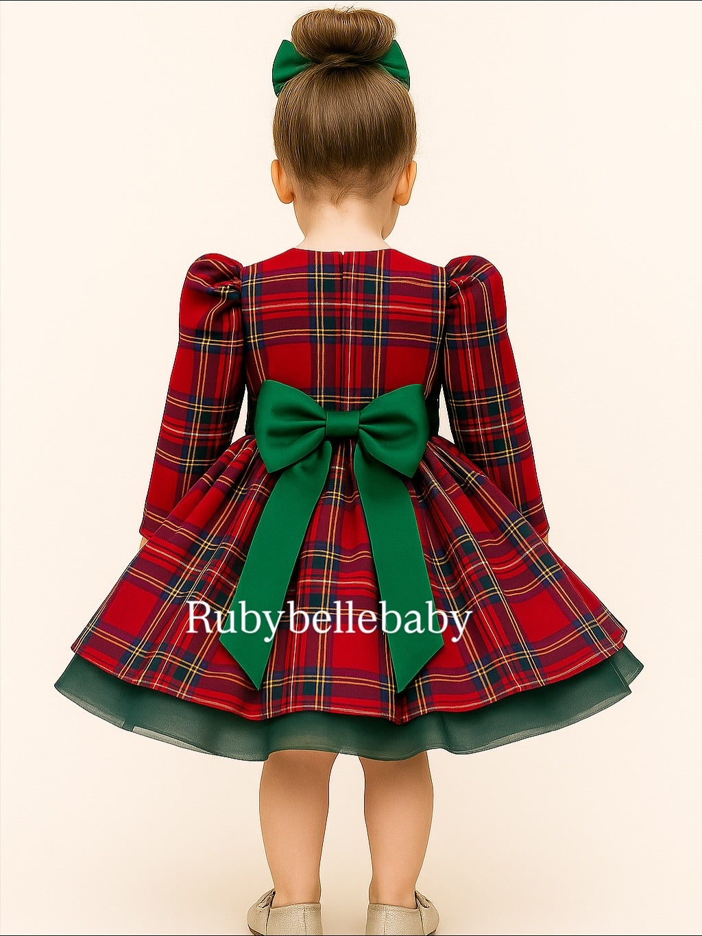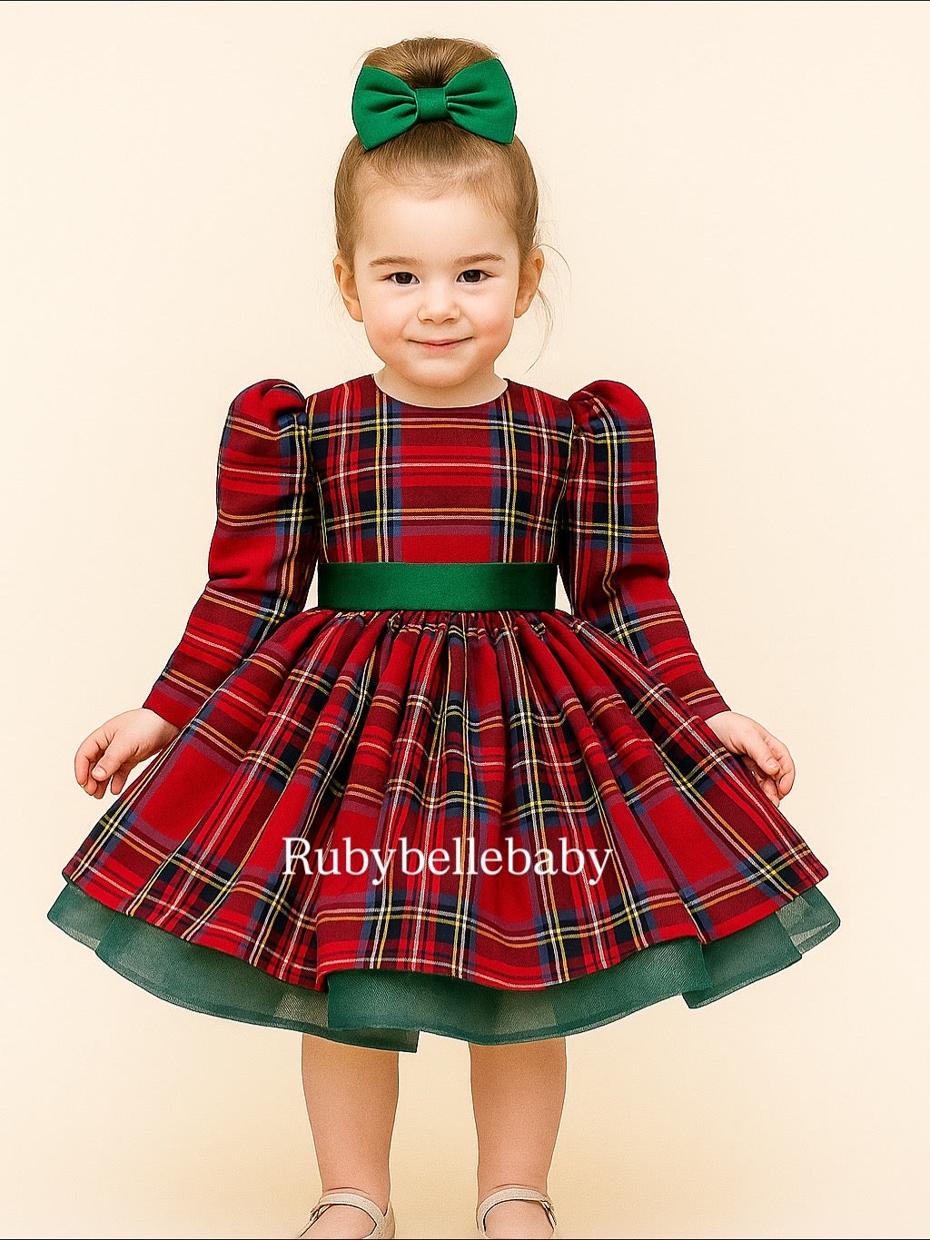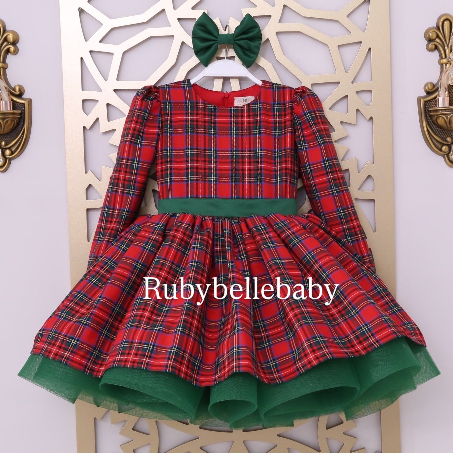 holiday dress, red plaid dress, Christmas outfit, girls tartan dress, festive toddler dress, luxury kidswear, Rubybellebaby, plaid Christmas dress, holiday photo outfit, girls Christmas gift