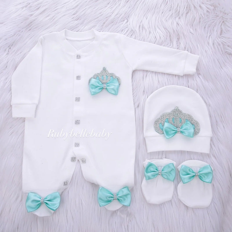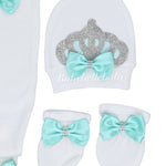 3pcs Princess Crown Baby Layette Outfit - Mint Green
