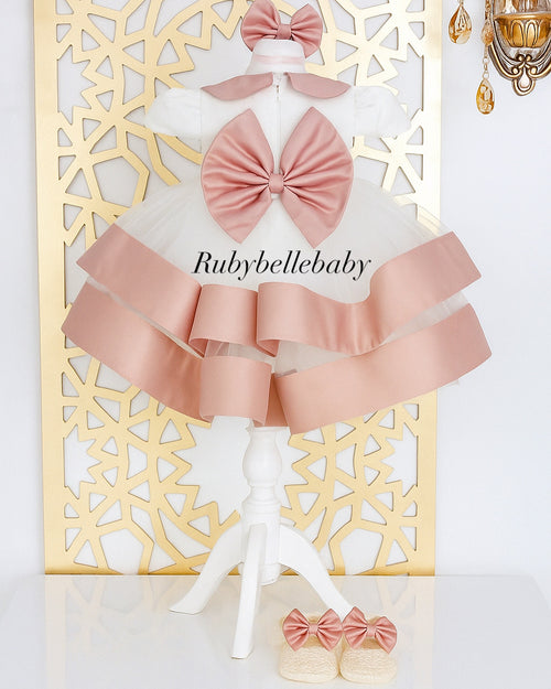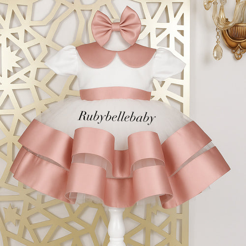 Adrianna Satin Collar Accents Dress – White & Blush Pink
