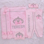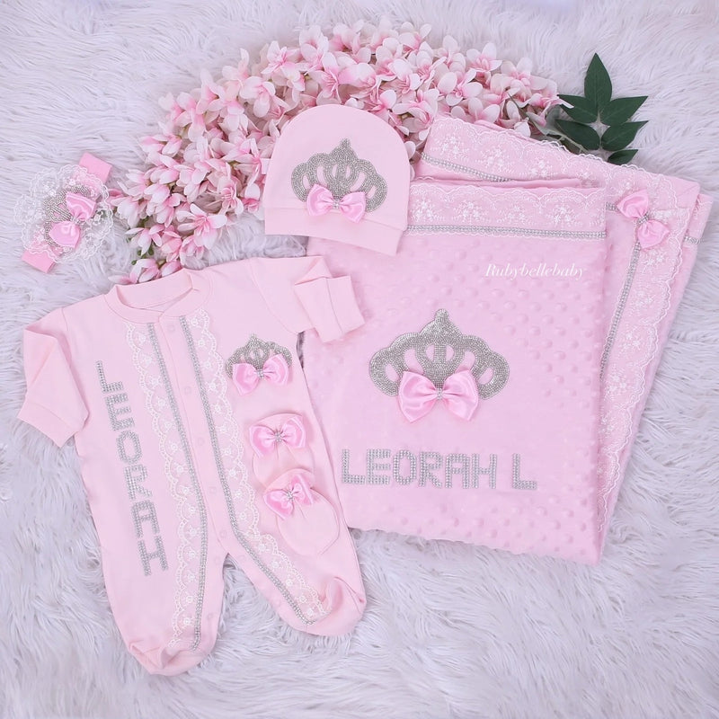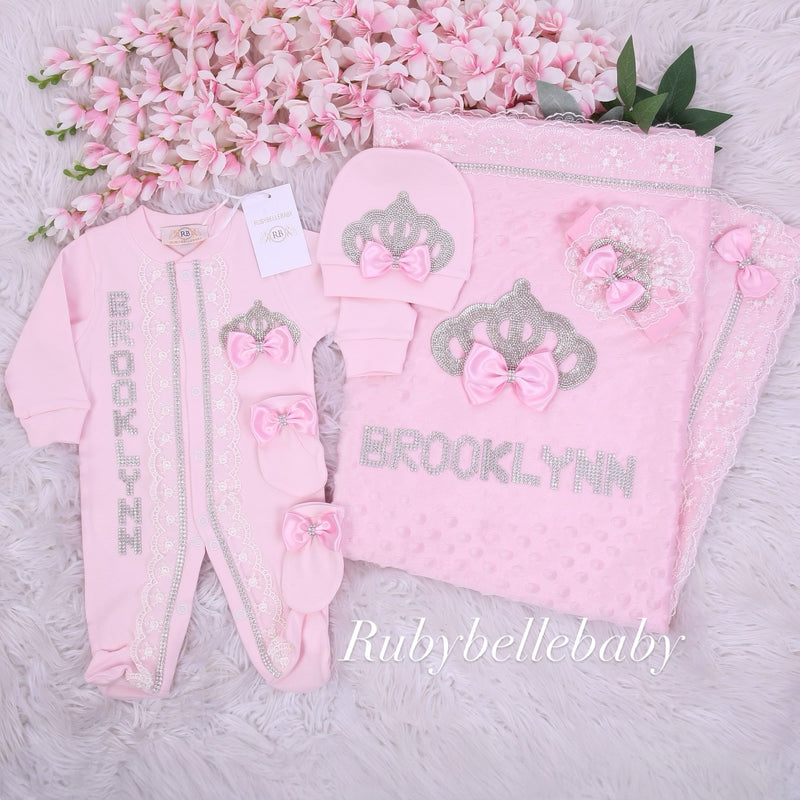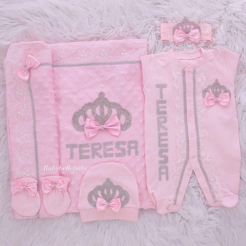 Custom Orders - To customize your order, kindly add baby's name to the "add baby's name here" column above and add the item to cart. If you would like this set in a different size or color and it is not available or you would like to customize the set to your preferences, kindly enter the size, details and information you'd like in the "add baby's name here" column above and add the item to cart for checkout. For special customization, you can send an email to rbellebaby@gmail.com or WhatsApp +12408257523.