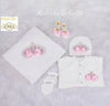 Custom Orders - To customize your order, kindly add baby's name to the "add baby's name here" column above and add the item to cart. If you would like this set in a different size or color and it is not available or you would like to customize the set to your preferences, kindly enter the size, details and information you'd like in the "add baby's name here" column above and add the item to cart for checkout.