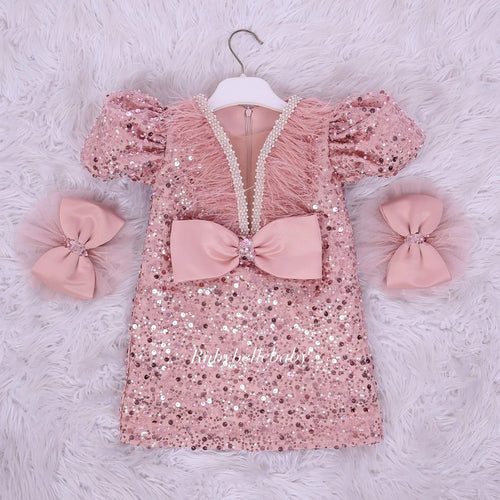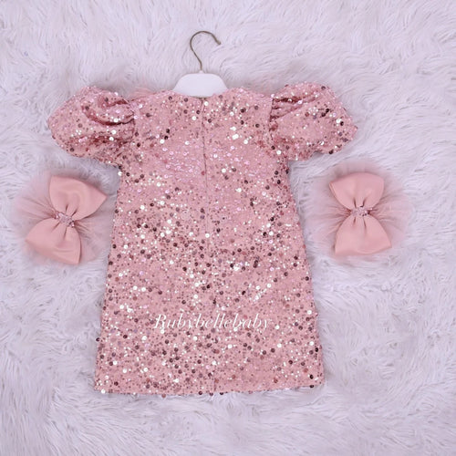 Sparkle sequin Party Girls Long Train Dress - Blush